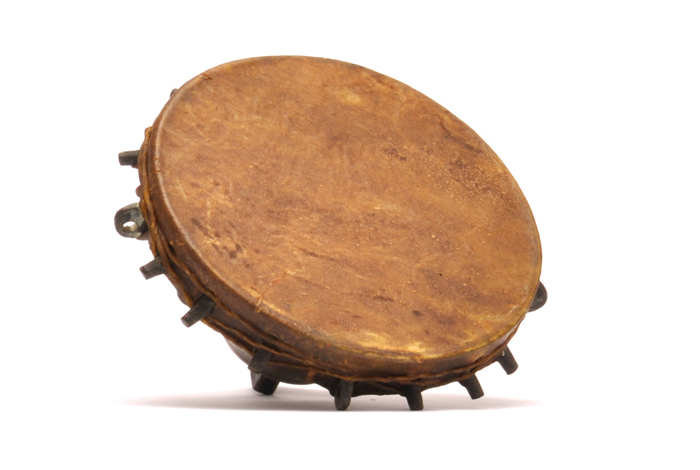 Pequeno tambor egípcio, de bronze, que os daroeses (religiosos maometanos) tocam com baquetas de madeira.
